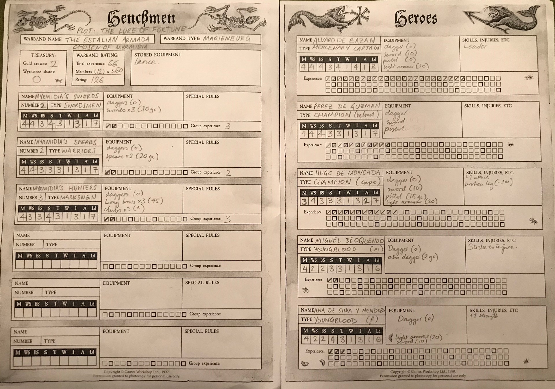 On the exploration rolls the warband finds a lance and 3 treasures (making 4 total). 2 treasures are used to ransom the captain, and 2 are sold for 45 gc.